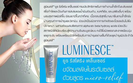 ขั้นตอนแรกสู่ผิวอ่อนเยาว์ยิ่ง ขึ้น Luminesce™ youth restoring Cleanser เจลทำความสะอาดผิวสูตรพิเศษ ช่วยคงความชุ่มชื่นของผิวตามธรรมชาติ และแสนอ่อนโยนในการขจัดสิ่งสกปรกตกค้างในรูขุมขน ได้อย่างหมดจด